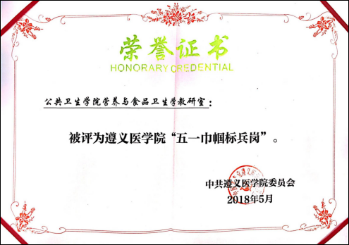 2018年教研室团队获遵义医公司“五一巾帼标兵岗”,连续6次获太阳成集团tyc539科室评比第一名。