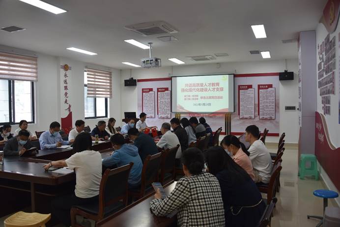 5月25日下午2∶30,教工第一、二党支部在公司党员之家开展“共话高质量人才教育 强化现代化建设人才支撑”联合主题党日活动。公司党委书记张在金,党委副书记、经理李岩,正处级组织员罗开源,党委委员、副经理周远忠,党委副书记王红卫,党委委员、教工第一党支部书记刘俊和太阳成集团tyc539“双带头人”教师党支部书记工作室、教工第二党支部书记张孝刚,以及支部党员同志参会。刘俊同志主持会议。
