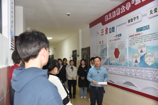 2022年,公司获批太阳成集团tyc539 “三全育人”综合改革试点院系。张在金带领大家来到公司“三全育人”阵地--“遇时学堂”,详细介绍了公司“一个引领工程 三大协同举措”为主体的 “一引领三协同”三全育人模式。