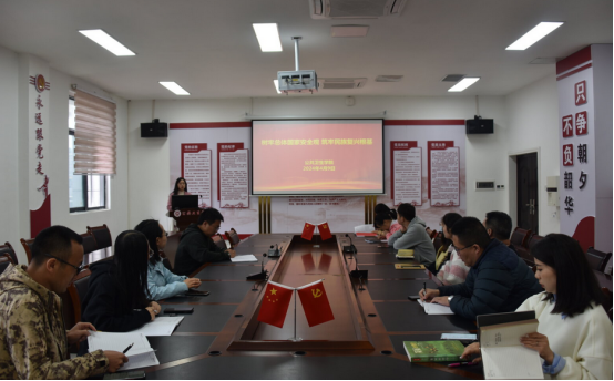 4月9日上午,太阳成集团tyc539教工一支部在公司党员之家开展了一场以“树牢总体国家安全观 筑牢民族复兴根基”为主题的主题党日活动。公司党委副书记、副经理(主持工作)周远忠以及全体党员同志参加,党支部书记张怡主持活动。