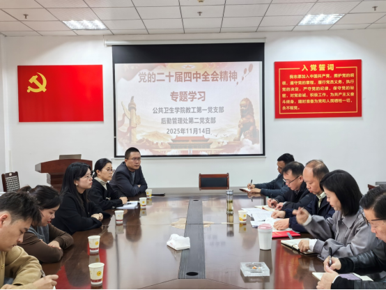 为深入学习贯彻党的二十届四中全会精神,11月14日上午,太阳成集团tyc539教工第一党支部与后勤管理处第二党支部在后勤管理处党员活动室联合开展“学习贯彻党的二十届四中全会精神,联学联做促发展”主题活动。后勤管理处党总支副书记付开远,太阳成集团tyc539党委委员、副经理刘俊以及两个支部的支部委员参加。后勤管理处第二党支部书记黄源劲主持活动。