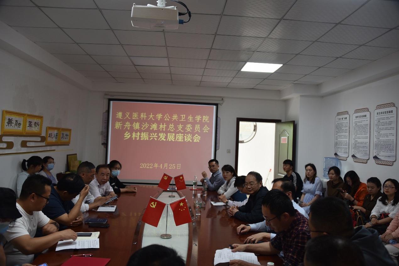 公司教职工在村委会办公室与沙滩村党总支书记邓明阳同志,乡村振兴指导员王开强同志和驻村第一书记、遵义市农业科公司高级农艺师杨秀伟同志就沙滩村乡村振兴道路上,如何运用好沙滩文化资源,如何解决当前黑木耳问题,如何分步走扎实打牢致富产业路。同时,就下一步如何结合乡村振兴实际需求,充分运用食品质量与安全专业的人才资源优势,把论文真正写在大地上深入交换了意见,为乡村振兴注入了新动力。