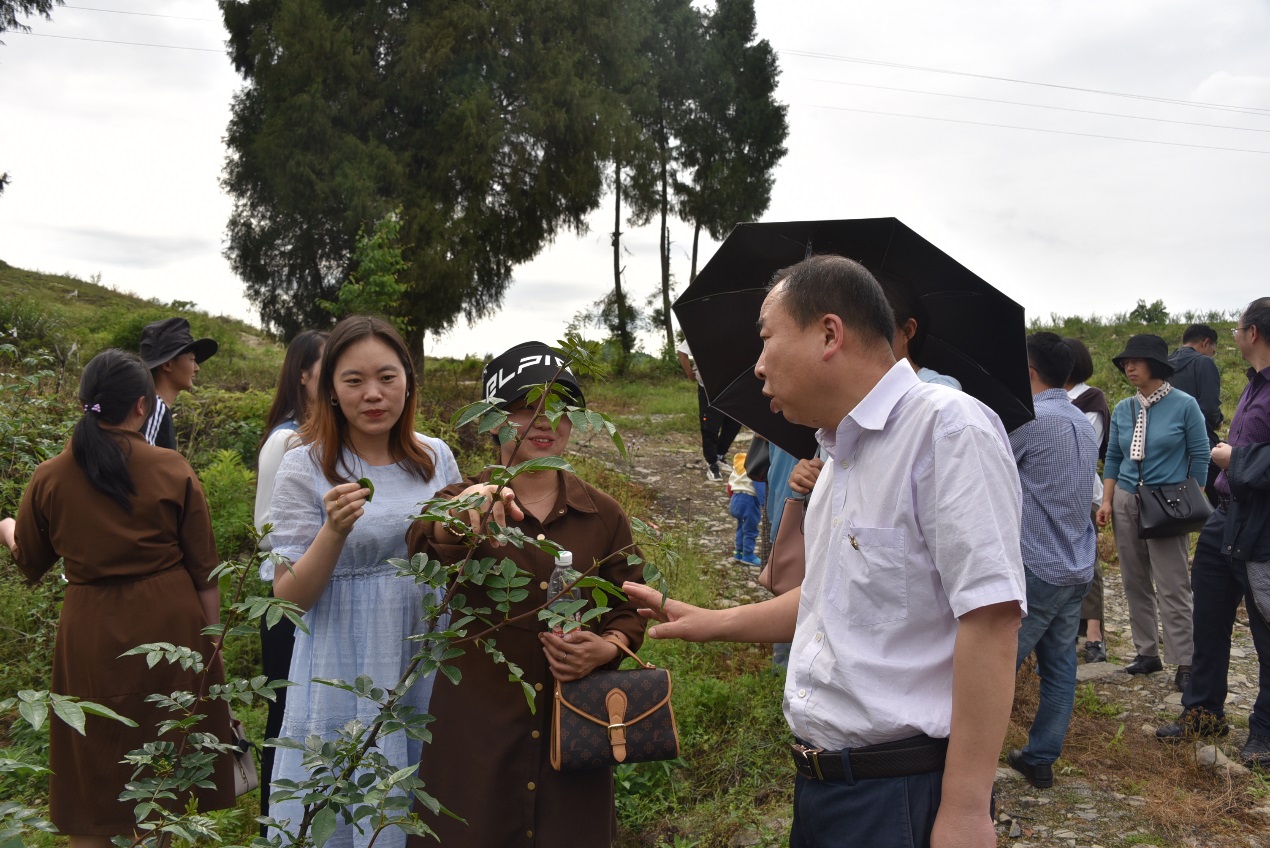 座谈会后,全体教职工到沙滩村花椒种植基地进行了现场交流和学习。