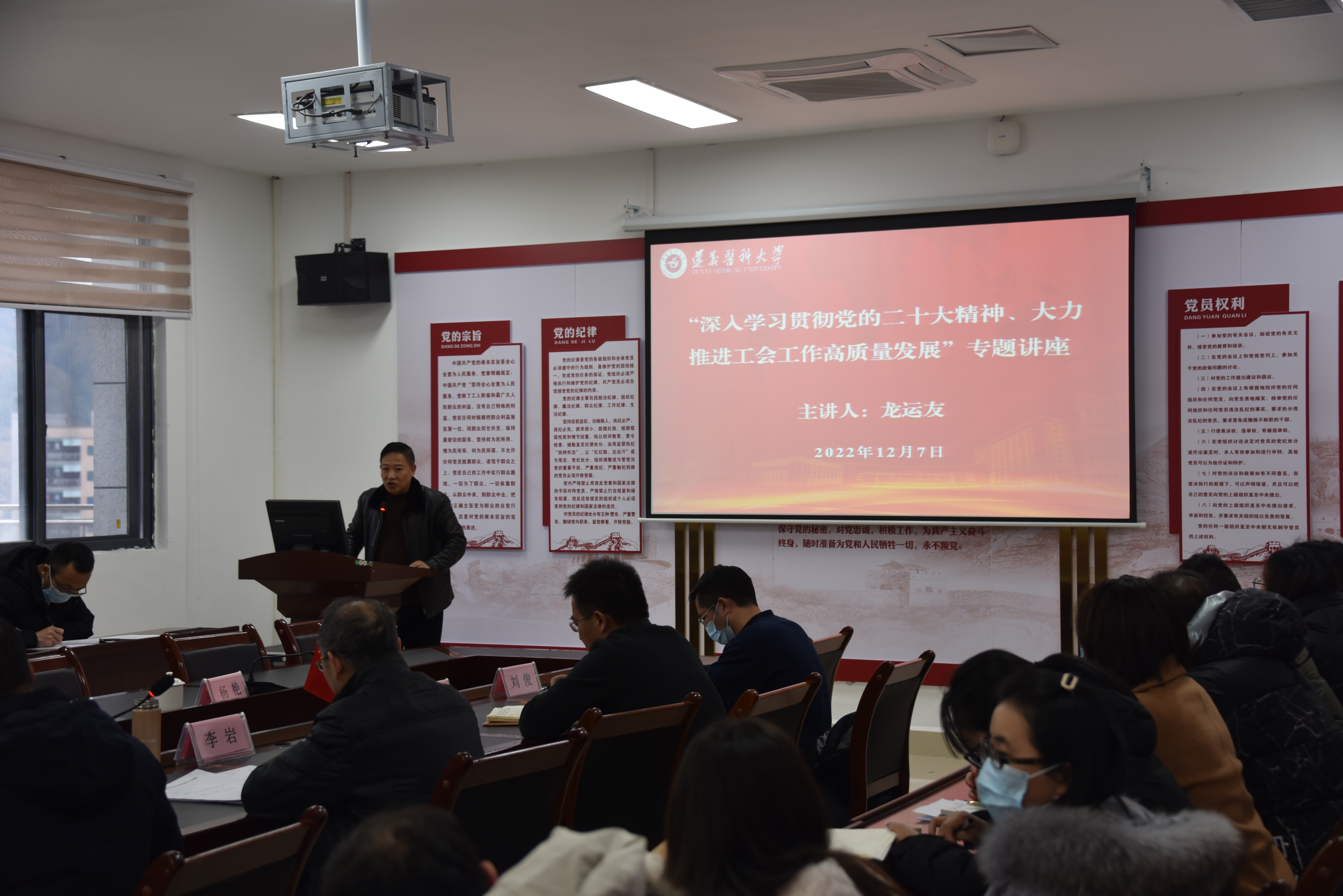12月7日下午2:30,公司工会主席龙运友一行莅临公司调研并作“深入学习贯彻党的二十大精神、大力推进工会工作高质量发展”专题宣讲。公司党委副书记、经理李岩,副经理周远忠,党委副书记、公司工会主席王红卫,党委委员刘俊,公司工会副主席胡斌丽以及全体教职工参加会议。党委副书记、经理李岩主持会议。