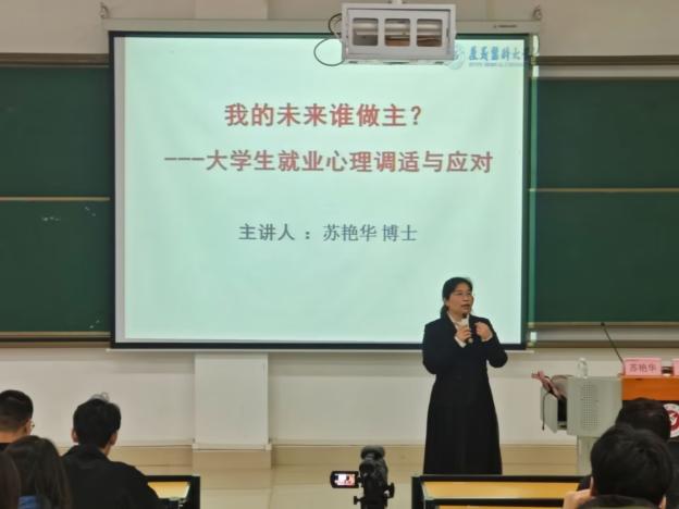 苏艳华首先通过自身经历,向大家分析了毕业生常见的心理问题,突出强调就业调试的重要性。接着围绕目前就业环境,向大家介绍了实用的心理调适技巧,例如情绪管理、时间规划、积极暗示等。另外,还提出要构建社会支持系统,遇到困难时,要主动寻求帮助;正视压力,化焦虑为行动力,人生没有“标准答案”,勇敢尝试比“一步到位”更重要,接纳不完美的自己。最后,苏艳华老师希望同学们在未来生活中,做好情绪和时间管理,增加心理弹性,轻装上阵,积极、勇敢迎接人生的新阶段。