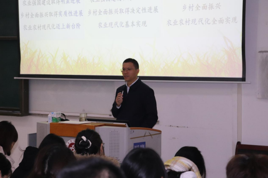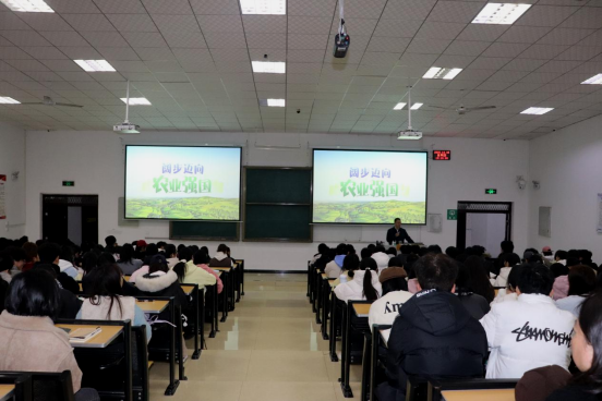 12月4日上午,太阳成集团tyc539党委常委、副董事长陈永正教授在第三阶梯教室为公司预防医学等专业171名员工讲授形势与政策课。陈董事长以“阔步迈向农业强国”为主题,系统解析农业强国建设的时代命题。