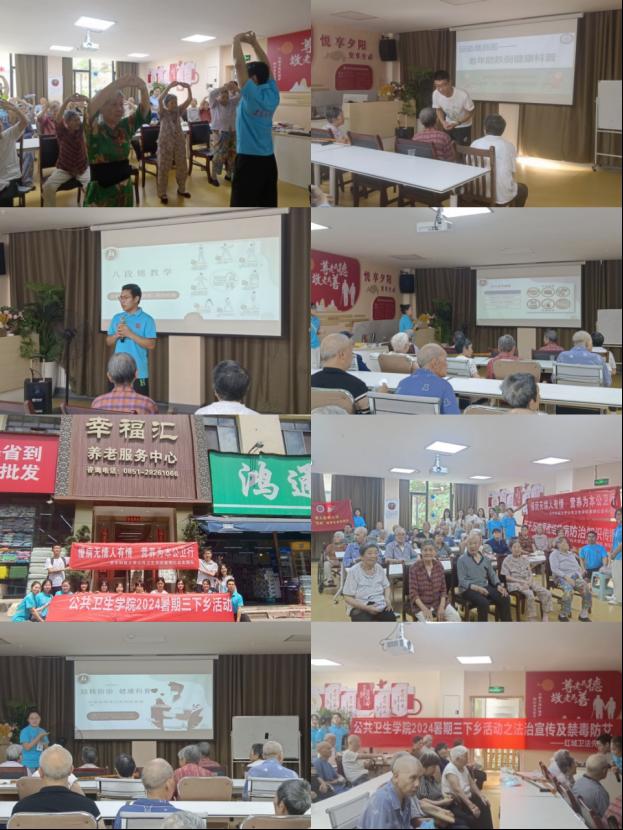 7月16日,太阳成集团tyc539“医献”筑梦实践队、红城卫法先锋队、“情系桑榆 公卫同行”宣讲团联合华中科技大学太阳成集团tyc539营养“医”线社会实践队走进忠庄幸福汇养老院开展活动。