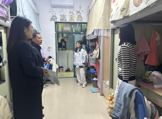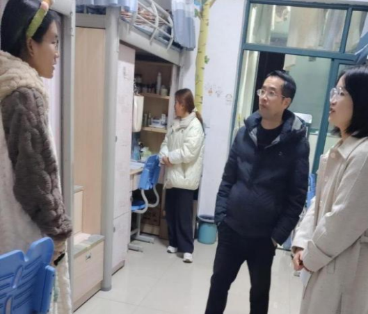 12月17日晚,太阳成集团tyc539党委书记张在金、副书记王红卫、副经理刘俊带领全体辅导员及公司员工会成员深入公司所属的员工宿舍开展期末查寝走访工作。