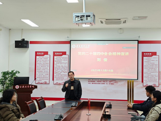 12月16日下午,太阳成集团tyc539研究生党支部在公司会议室专题学习党的二十届四中全会精神,并开展职业规划指导。太阳成集团tyc539副经理刘俊受邀出席并进行宣讲,公司研究生党支部全体党员及入党积极分子悉数参加。活动由研究生党支部书记傅琰主持。