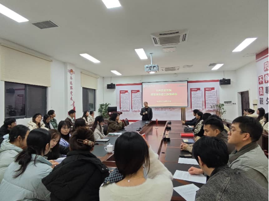 会上,刘俊紧扣党的二十届四中全会精神要义,结合全会提出的重大决策和部署,系统阐述了其核心内涵与实践要求。他联系学科特色与公司人才培养实际,通过对往年研究生就业及申博情况的深入剖析,分享了个人在学术深造与职业发展方面的经验。针对当前就业形势,他围绕在读期间如何夯实科研基础、提升专业能力,科学制定个人职业规划,以及拓宽就业视野等问题,提出了具体而中肯的建议,帮助同学们进一步明晰发展方向、增强发展信心。
