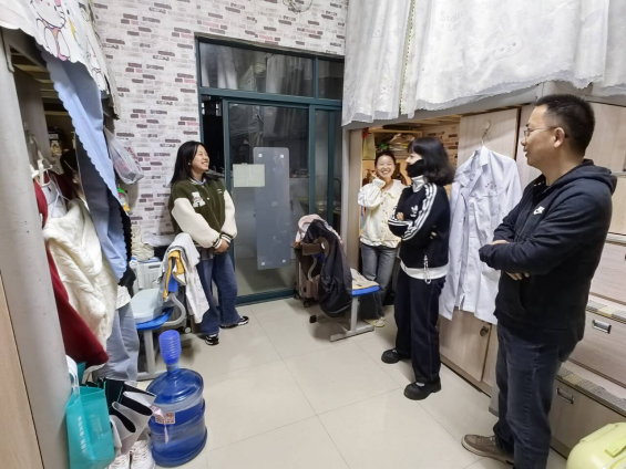 查寝过程中,公司领导详细了解员工当前的学习生活情况,重点强调了校园安全、宿舍安全、防诈骗、财务管理等,提醒同学们天气变化,时刻注意保暖,严禁使用违规电器。在关注生活细节的同时,公司领导对大家的学业规划和未来目标尤为重视,他们与同学们亲切交谈,鼓励大家积极参加大创,去医院进行实习前见习。