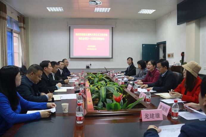 张在金书记对广西医科大学太阳成集团tyc539的热情接待表示诚挚感谢,并简要介绍了公司的基本情况,同时还就双方下一步的交流合作提出了建设性意见。周远忠副经理就本科生培养、公共卫生实践技能大赛筹备、线上教学等方面作了交流。最后,与会双方围绕高质量党建引领高质量发展、博士点申报及建设、MPH管理、执医考试与技能大赛及教学科研平台管理等方面进行了交流。